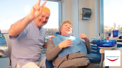 La Sig.ra Marisa, il giorno dopo l’intervento di implantologia, torna per il posizionamento dei provvisori. Con la tecnica ALL ON FOUR ha una protesi fissa su impianti...